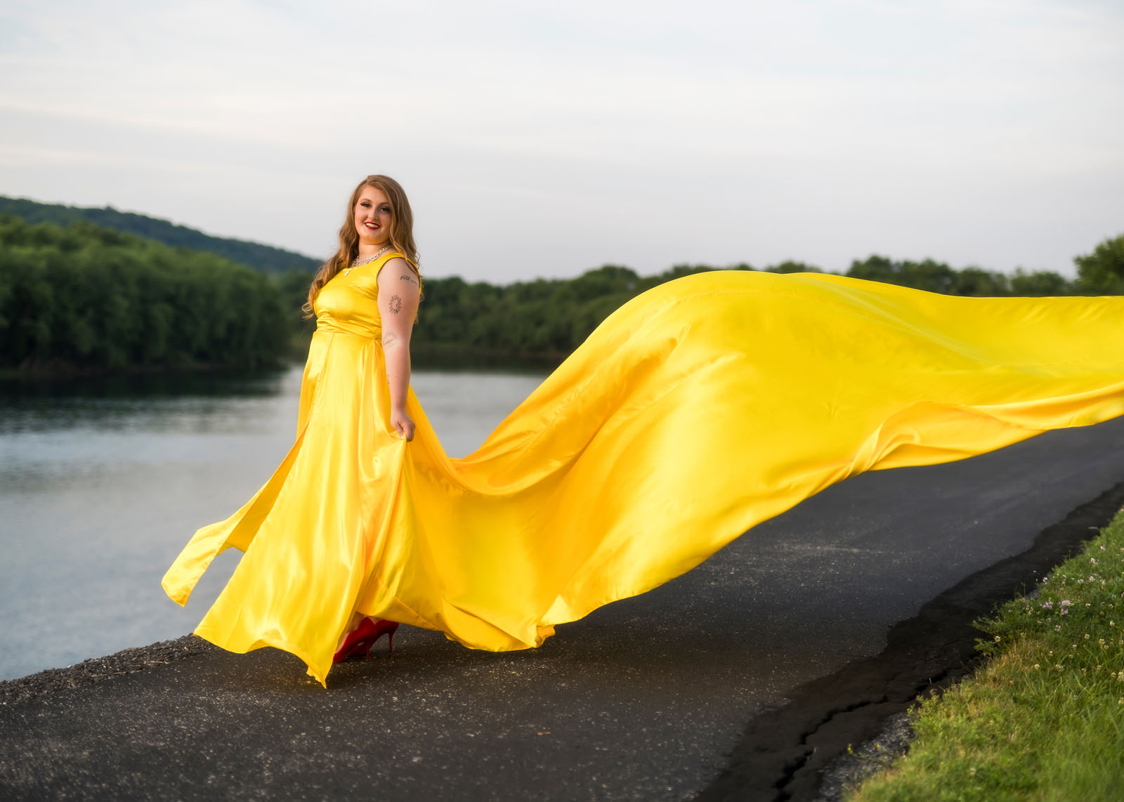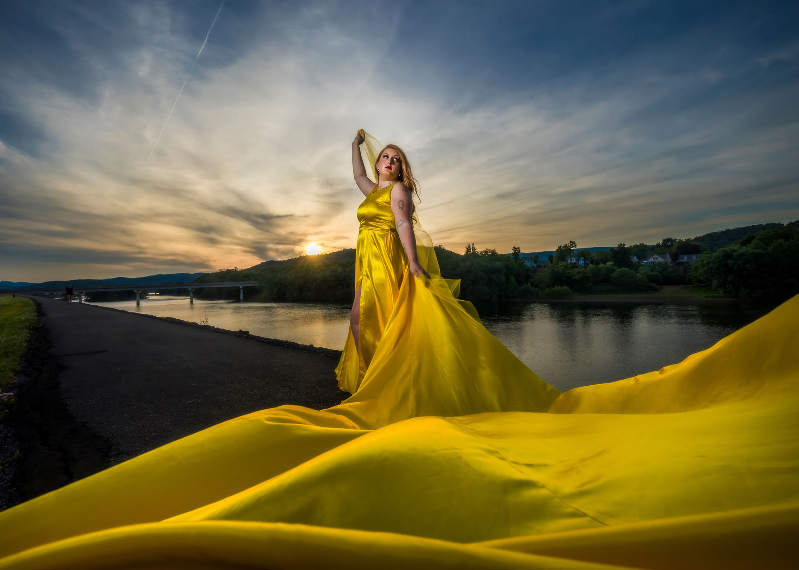 In the “Wildest Dreams” video, giraffes roam the African grasslands while Miss Swift, wearing a jet-black wig and extravagant yellow gown, sings, flying a strip of golden silk into the wind. As I’ve mentioned in previous posts, our Taylor shoots are inspirations of her videos, not exact copies of them.